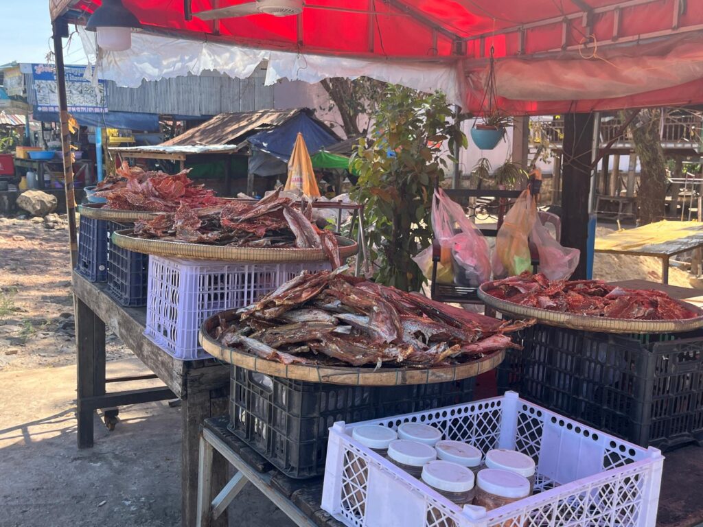 Om meer van het land te ontdekken, heb ik aan boord een excursie geboekt. We bezoeken het vissersdorpje Kdat, waar we een inkijkje krijgen in het dagelijkse leven van de lokale bevolking. Aan de houten gevels hangen vissen te drogen en langs de weg liggen lege rijstvelden. Voor de huizen van de dorpelingen zien we de geoogste rijst liggen, die later op de dag wordt geschept in zakken. Deze zijn bestemd voor de verkoop of voor eigen gebruik.